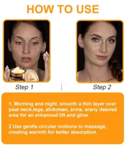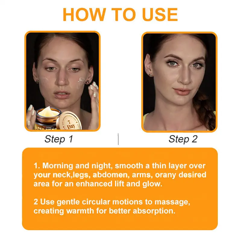- Morning and night, smooth a thin layer over your neck, legs, abdomen, arms, or any desired area for an enhanced lift and glow.