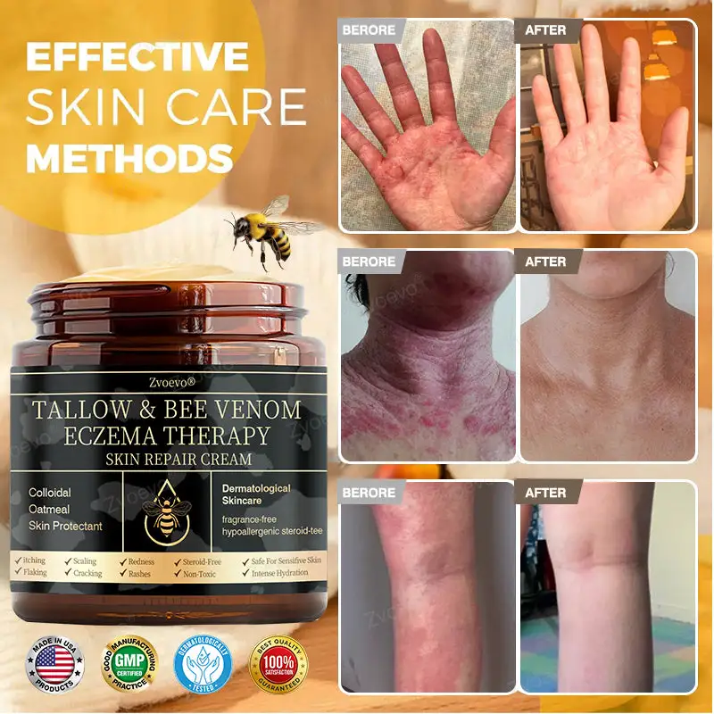 “Iโve battled stubborn psoriasis for years, from my face down to my neck. I tried everything โ prescription creams, steroid ointments, medicated soaps, even painkillers to survive flare-ups โ but nothing worked long-term. Then I tried ๐๐ฏ๐จ๐๐ฏ๐จยฎ Eczema Therapy Cream with Tallow & Bee Venom. Within weeks, the redness and flakes started to improve, the burning eased, and after 3 weeks, my skin finally looks normal. I can go out without hiding my face, and I feel confident again. This cream really gave me my life back.” โ โญโญโญโญโญ Caroline Hughes