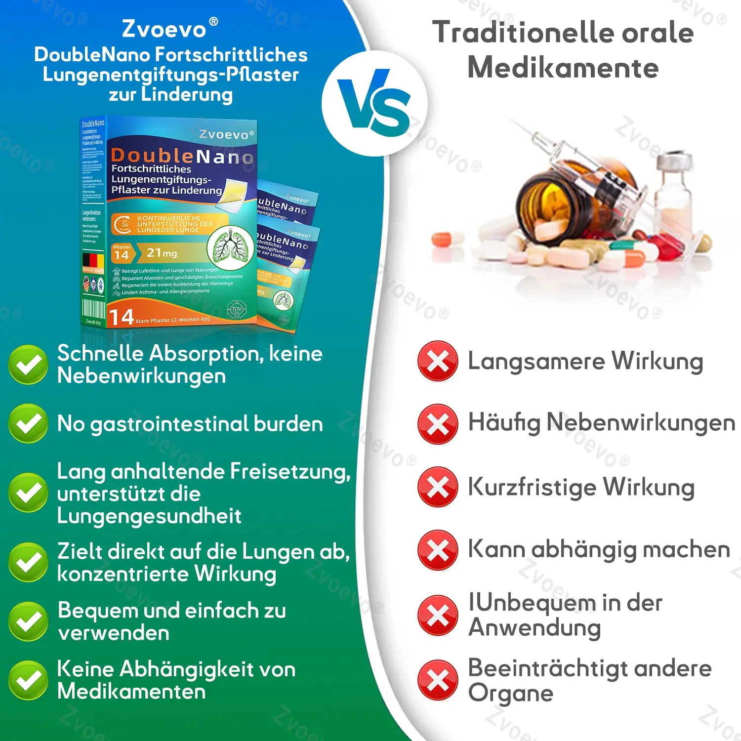 โ Langsame Freisetzung: Durch die transdermale Technologie werden die Wirkstoffe allmรคhlich freigesetzt, wodurch langanhaltende Effekte auf die Lungen erzielt und die Selbstreparaturfunktion der Lunge unterstรผtzt werden.