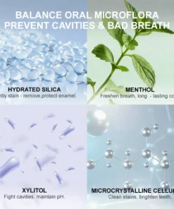 โ Bacteria inhibition โ Actively suppresses bacterial growth to prevent plaque, odor, and long-term damage.