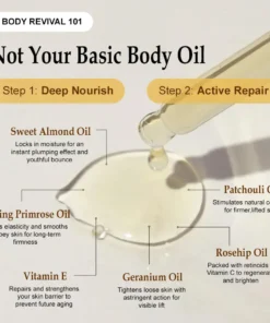 These natural compounds work together to repair damaged skin, support cell regeneration, and enhance overall skin healing. As an all-in-one solution, Zvoevoยฎ Silk Body Oil provides comprehensive care for multiple skin concerns by delivering deep hydration, improving elasticity, and reducing the appearance of fine lines and sagging skin in one powerful, effective formula.