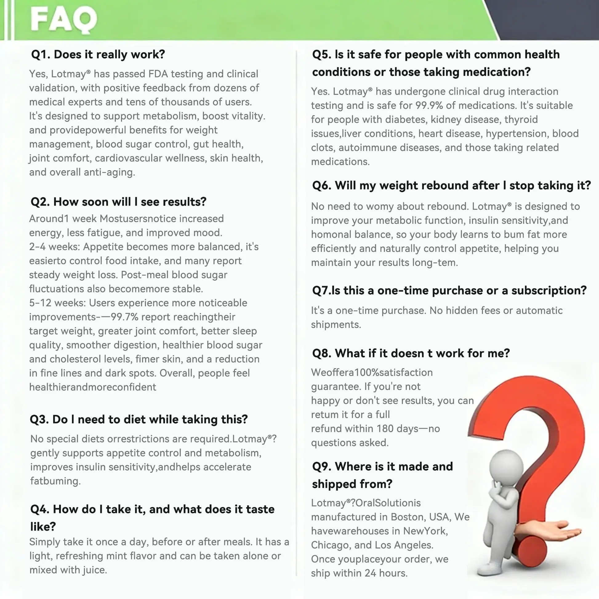 โ ย ย Safe and effective:ย ย Our oral liquid is made from natural ingredients and according to a scientific formula and is certified for quality and safety by FDA and GMP.