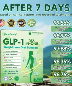 In clinical studies, users ofย WarmFamilyยฎ GLP-1 Six in One Health Solution Oral Liquidย achieved impressive results, with some losing as much as 6โ8 lbs of stubborn fat in just one week.With just one dose every two days, it effectively targets the burning of visceral and abdominal fat, helping to sculpt a leaner body โ no intense workouts required.
