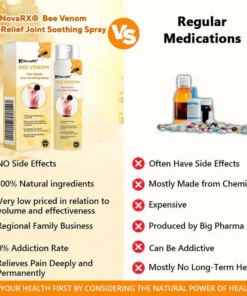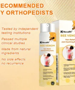 NovaRX® Bee Venom Pain-Relief Joint Soothing Spray This product is certified and recommended by FDA. meeting their high standards to effectively relieve pain and promote bone health. Approved by orthopedic doctors. it relieves pain within 5 minutes. restores joint mobility in 7 days. and significantly improves arthritis symptoms in 4 weeks. Choose our NovaRX® Bee Venom Pain-Relief Joint Soothing Spray and enjoy reliable results and a pleasant experience with confidence.