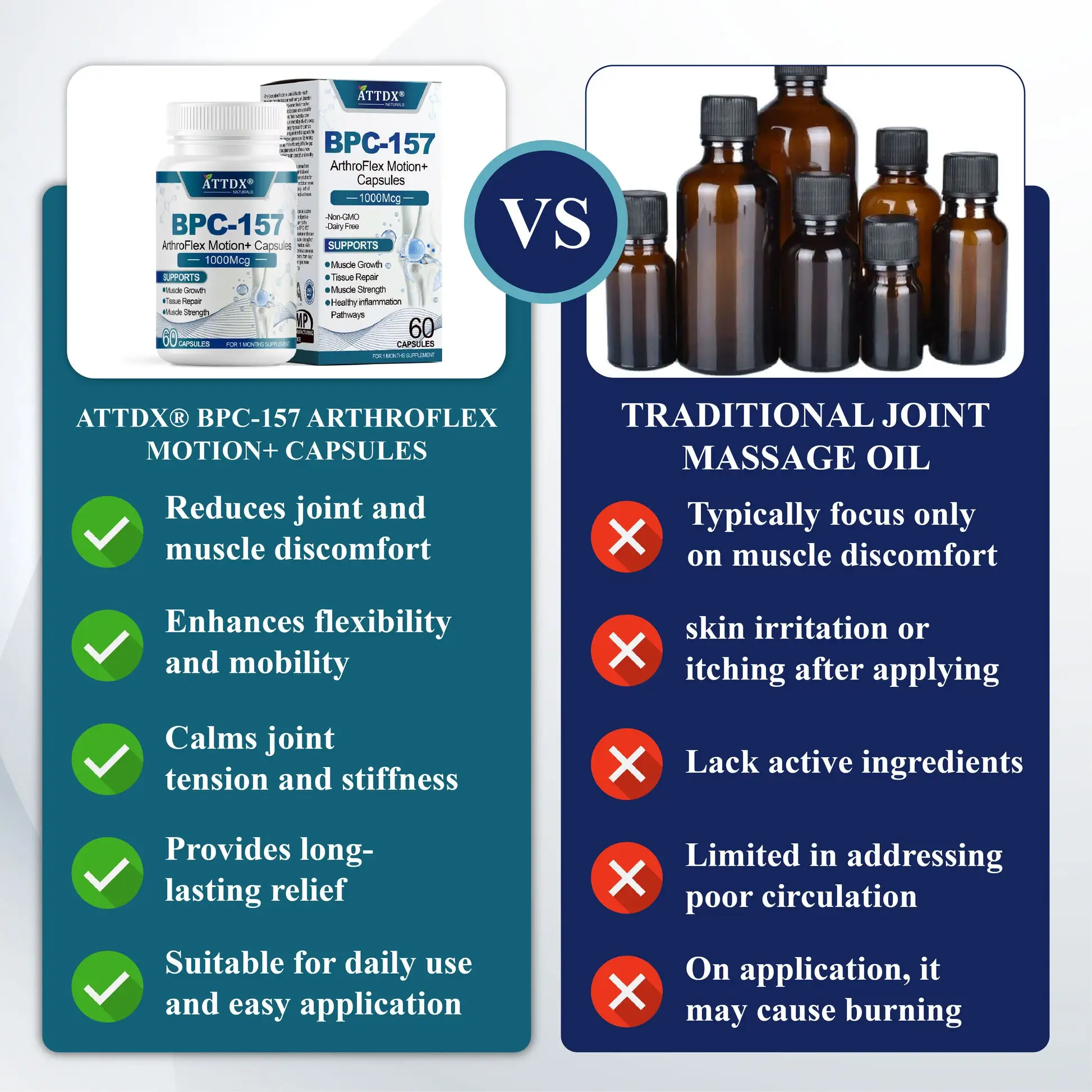 ATTDX® Capsules are specially formulated to support your body’s natural repair processes, helping relieve joint and muscle discomfort while promoting stronger, more flexible, and healthier movement with every dose.
