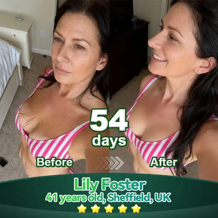 I drink it twice a day — just mix it into water — and every time, I feel this gentle warmth all over my body. I’m not kidding, I notice changes almost every other day! I started on August 25th, kept doing it twice a day, plus a bit of sunscreen — that’s literally all. It’s so simple and works so fast! My dark spots, rosacea, wrinkles… even my hair looks so much better now. This is honestly a full-body booster, and I don’t think I can go a day without it anymore. I feel absolutely amazing, and I 100% recommend it! — Deborah Collins