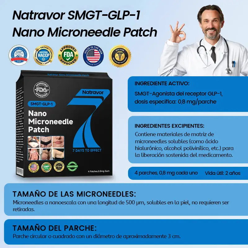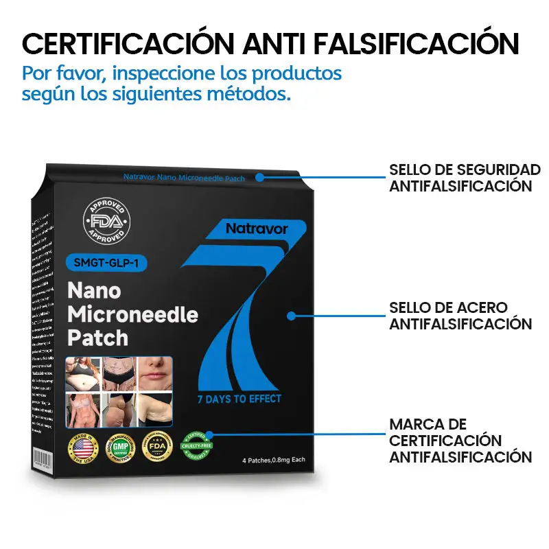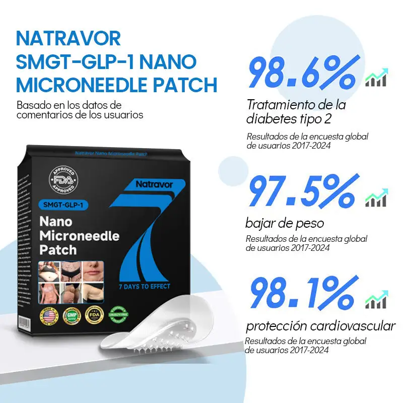 El Natravor™ 𝐒𝐌𝐆𝐓-𝐆𝐋𝐏-𝟏 𝐍𝐚𝐧𝐨 𝐌𝐢𝐜𝐫𝐨𝐧𝐞𝐞𝐝𝐥𝐞 𝐏𝐚𝐭𝐜𝐡 ha sido desarrollado meticulosamente por la Sociedad de la Obesidad. Diseñado por un equipo de expertos líderes en el manejo de la obesidad, este producto de vanguardia fue creado tras años de investigación exhaustiva y un profundo conocimiento de los mecanismos involucrados en la pérdida de peso y el control de la obesidad. Su fórmula única está diseñada para promover eficazmente la pérdida de peso, mantener niveles estables de azúcar en sangre y mejorar el equilibrio metabólico, al tiempo que incorpora Matrixyl 3000 para brindar importantes efectos reafirmantes y lifting, ayudando a los usuarios a mejorar la forma del cuerpo y la condición de la piel de manera más integral, apoyándolos así en el logro de sus objetivos de salud.