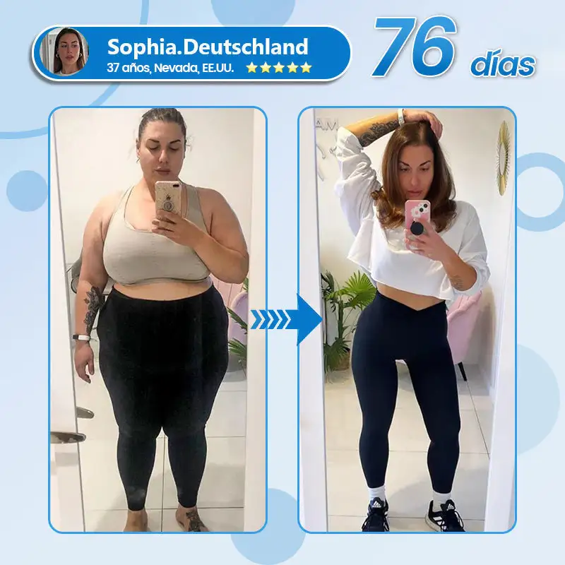 También he probado otros productos para bajar de peso. Sí, perdí un poco de peso, pero mi piel quedó flácida y con aspecto más cansado y agotado. Pero el Parche de Microagujas Nano Natravor™ es diferente. Contiene Matrixyl 3000 y el efecto reafirmante es realmente notable: ¡mi piel no solo no se ha desprendido, sino que se siente más firme! Lo he usado de forma constante durante 84 días y los resultados son increíbles: he perdido varios kilos, mi nivel de azúcar en sangre se ha normalizado y me veo más joven. ¡Mis amigos incluso han comentado lo mucho más radiante que me veo! Es facilísimo de usar (solo una vez a la semana), puedo comer lo que quiera y me ayuda a controlar automáticamente el tamaño de mis porciones. ¡Es realmente increíble!
