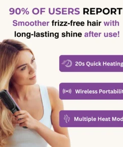 CONVENIENT WIRELESS DESIGN: Forget the hassle of cords – this hair straightening comb operates wirelessly for maximum portability and freedom of movement. The Type-C charging port ensures a fast, efficient recharge.