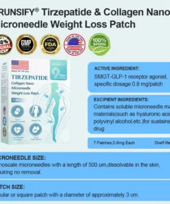 The Nano Microneedle Patch contains SMGT-GLP-1 in each patch. It works by mimicking the action of Glucagon-like Peptide-1 (GLP-1). promoting insulin secretion. inhibiting glucagon secretion. and delaying gastric emptying. which helps control blood sugar levels and aids in weight loss.