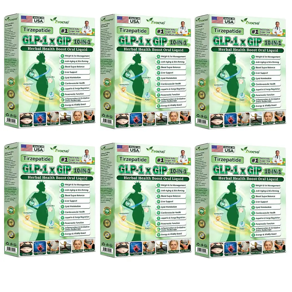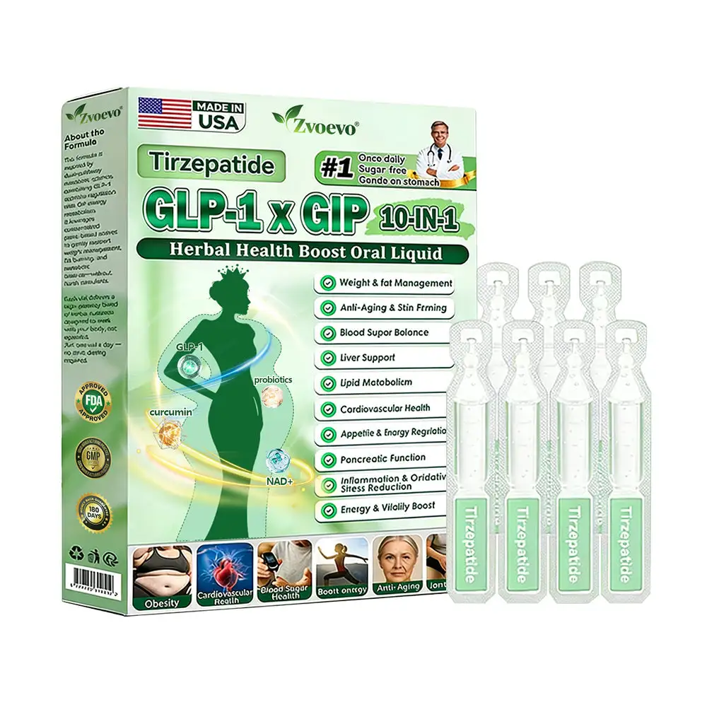 Zvoevo® Tirzepatide GLP-1 × GIP 10-in-1 Herbal Health Boost Oral Liquid, developed by over 30 experts through more than 20 years of research, is designed for all adults and body types. It combines Tirzepatide (GLP-1 + GIP) with natural extracts to help balance blood sugar, suppress appetite, and gradually burn fat for healthy weight loss.