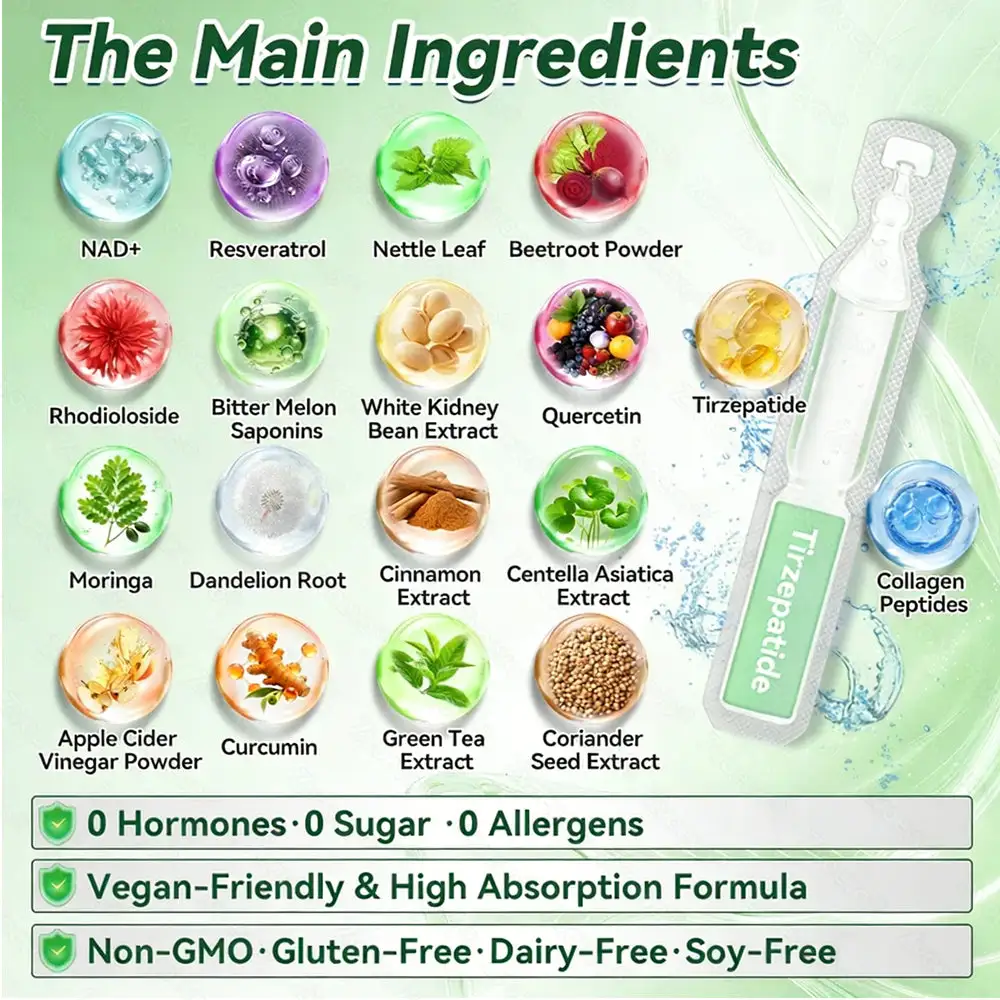 ✅ Easy Absorption: This formula uses a fast-absorbing liquid form with 𝐓𝐢𝐫𝐳𝐞𝐩𝐚𝐭𝐢𝐝𝐞 activators, delivering key ingredients directly into the body, bypassing the heavy digestive process—gentler on the stomach and especially suitable for those with sensitive digestion.