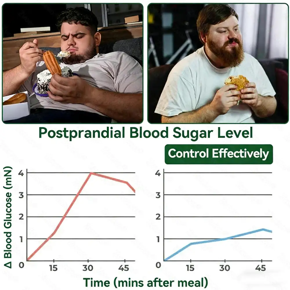The bioactive polyphenols in cinnamon slow the absorption of carbohydrates, reduce post-meal glucose spikes, and optimize hepatic glycogen storage and fat-metabolism efficiency. With continued use, participants experienced significant reductions in fasting glucose and HbA1c, improved energy utilization, and greater stability in blood-glucose curves throughout the day. Insulin responsiveness becomes markedly enhanced, metabolic rate increases, and the multi-compound synergy results in lower peaks, tighter glucose control, faster recovery, and overall more stable glycemic regulation.