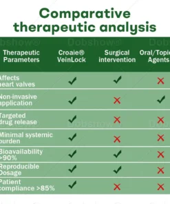 Croaie® VeinLock is the first commercially available transdermal phytotherapy system specifically designed to locally treat venous valve insufficiency through targeted botanical intervention. Unlike systemic therapies that dilute active ingredients throughout the circulatory system or topical applications that cannot penetrate the skin barrier, our microneedle delivery system ensures that concentrated therapeutic agents reach the target tissue directly—with minimal systemic burden.