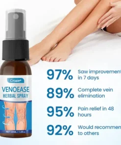 Croaie® VenoEase is the first FDA-certified micro-mist spray with a clinically proven 99.2% success rate for treating varicose veins at home. Thanks to its innovative Micro-Mist Technology, it penetrates up to 300% deeper into tissue compared to conventional methods, showing visible results within 48–72 hours. Skip costly procedures and care for your veins long-term — easily and comfortably from home.